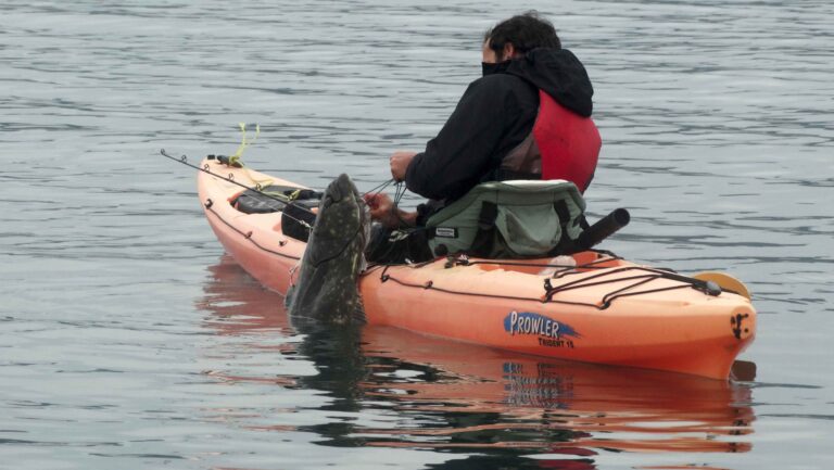 This is one of the most impressive places for fishing lures I have ever been to. You can target large or small schools of snapper on your sonar, where they will aggressively feed on 60- to 300-gram jigs. The below images show some of the schools of snapper we come across while paddling. In the first image, you can see the lure going down to the school and the snapper coming up to feed on it, and the second image is my favourite schools to look for. These are normally swimming around sunset in close to the rocks, and the snapper will feed nearly to the top of the water. The fish are actively feeding throughout the whole water column, so you can drop it all the way to the bottom and rip it through them.