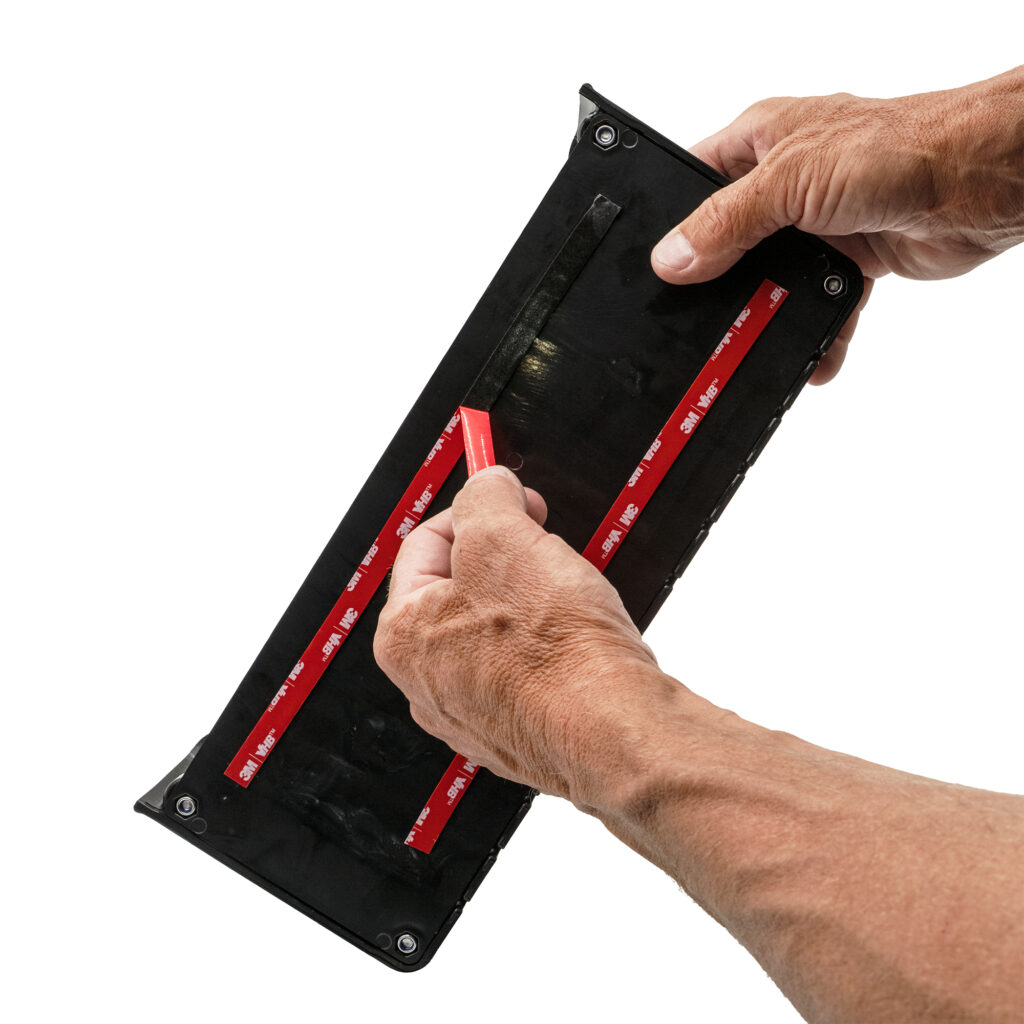 Mounting should begin with some careful planning and consideration. Whilst drilling and using screws will provide the most secure mounting solution, it is also rather permanent, as holes can’t always be filled if you need to remove your Side Bro. This is especially a consideration in smaller boats, where desired mounting solutions might mean drilling holes right through a hull! This is where silicone, double-sided tape or Velcro will be a much better option. These instructions are specifically for users who have decided to utilise double-sided tape as an adhesive.