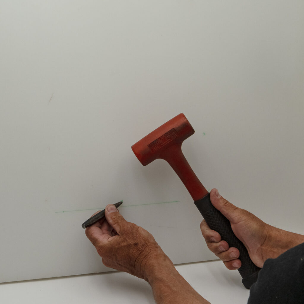 Step 3 A – (For aluminium boats or mounting to plastic surfaces only) use a centre punch and hammer to lightly indent the desired hole positions.